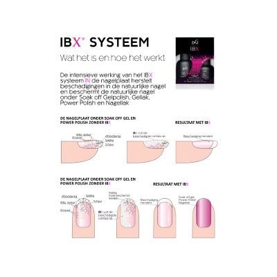 IBX is geschikt voor vrouwen én mannen, die mooie, lange natuurlijke nagels willen hebben, maar voor wie dat niet mogelijk was ten gevolge van een ongeluk, een beschadiging in de matrix of een natuurlijke zwakte. IBX herstelt en verstevigt de natuurlijke nagel en het is kleurloos en dus onzichtbaar.